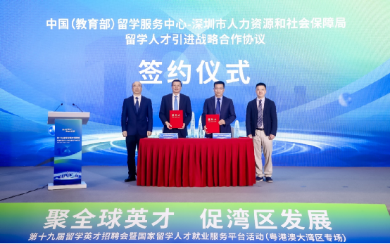教育部国际合作与交流司副司长陈大立、教育部留学服务中心党委书记兼主任程家财、中国社会科学院大学副校长高文书、深圳市人力资源和社会保障局局长赵忠良、深圳市人才工作局局长邓晓俊等嘉宾出席活动启动仪式并致辞。仪式上,教育部留学服务中心和深圳市人力资源和社会保障局签署了战略合作协议。双方以全面构建新时代留学人才引进战略合作关系为目标,以双方优势资源为依托,着力提升留学人才服务水平。