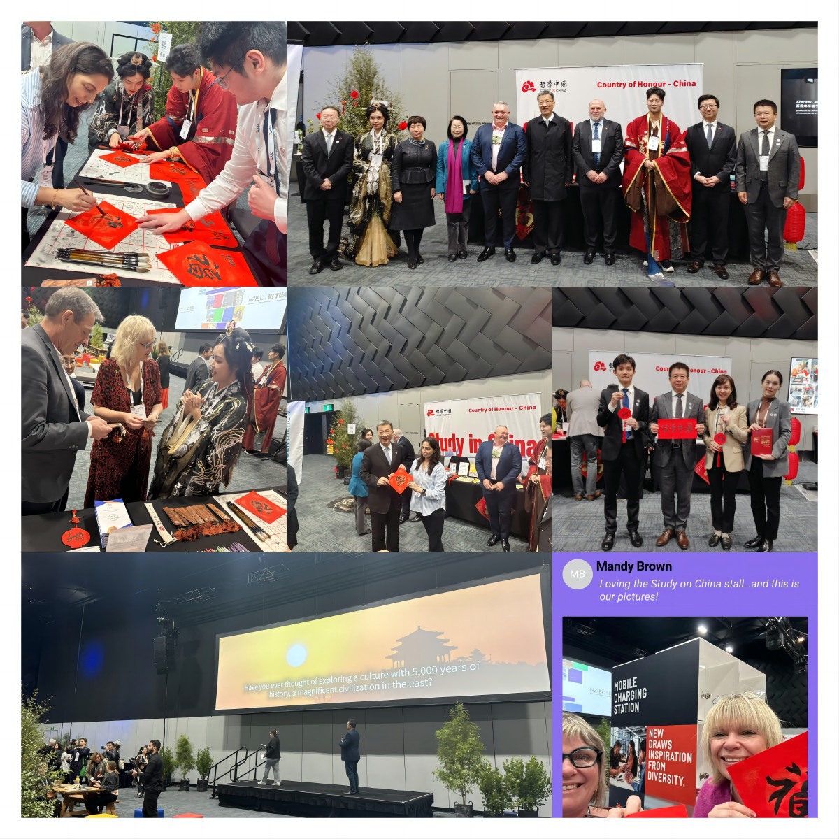 在第三十届新西兰国际教育大会活动现场,夏建辉副主任在留学中国展区向出席会议的怀进鹏部长、刘锦司长、刘自成司长、新方政府官员及中新教育界代表详细介绍了“留学中国”品牌的建设和发展情况,充分展示了我国在来华留学教育事业取得的丰硕成果。