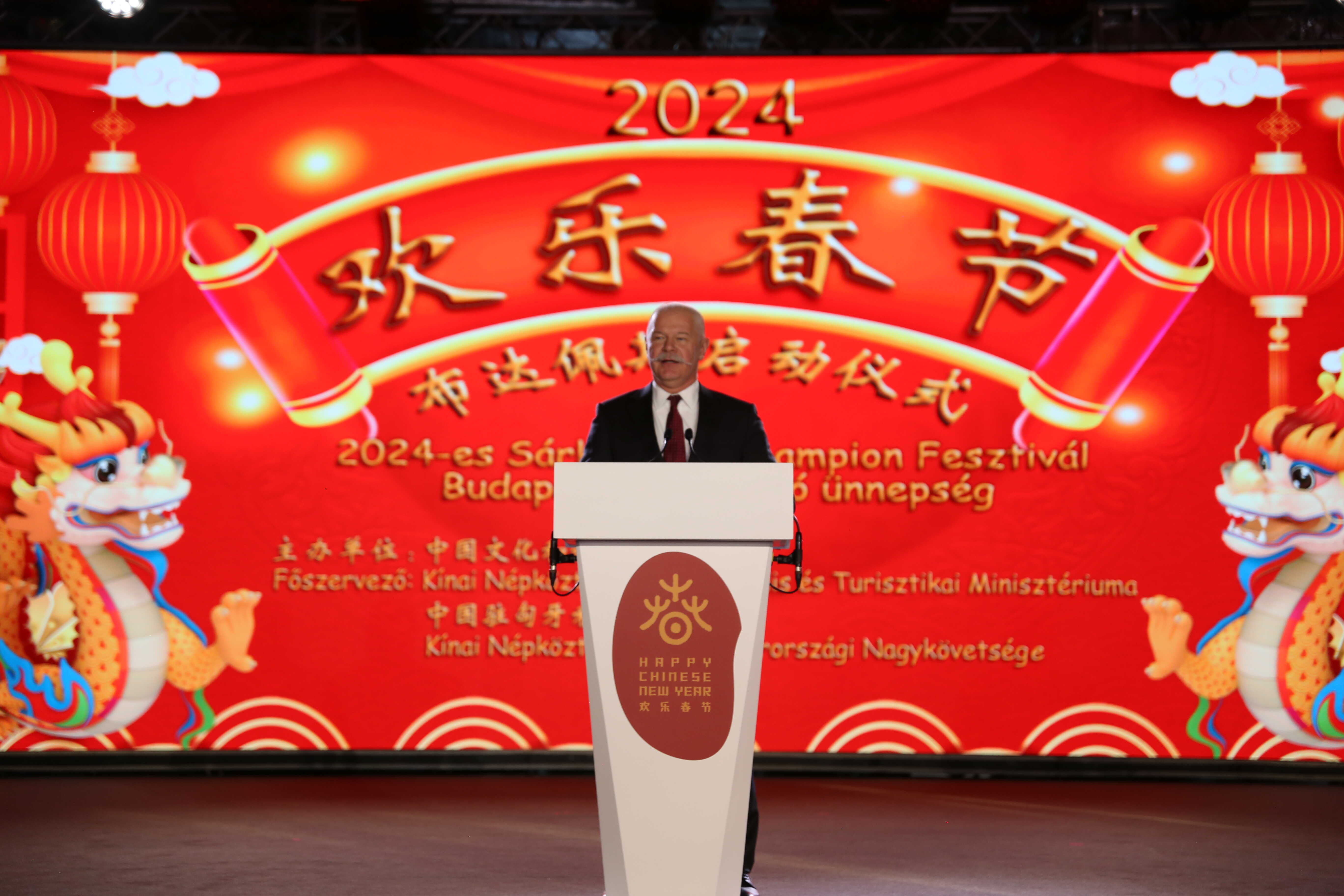 龚韬大使表示,2024年是中国的龙年,也是中匈建交75周年。目前中匈关系正处于历史最好时期,在两国领导人战略引领下,双方政治互信不断深化,“一带一路”倡议同匈“向东开放”政策深度对接,各领域务实合作成果丰硕,人文交流亮点纷呈,成为不同社会制度、不同历史文化、不同幅员人口国家之间友好交往的典范。今天的“欢乐春节”布达佩斯启动仪式不仅代表着匈牙利中国龙年春节庆祝活动的开始,也将拉开庆祝中匈建交75周年各项活动的序幕。相信新的一年里,中匈人文纽带更加紧密,友好氛围更加浓厚,全面战略伙伴关系迈上新台阶。