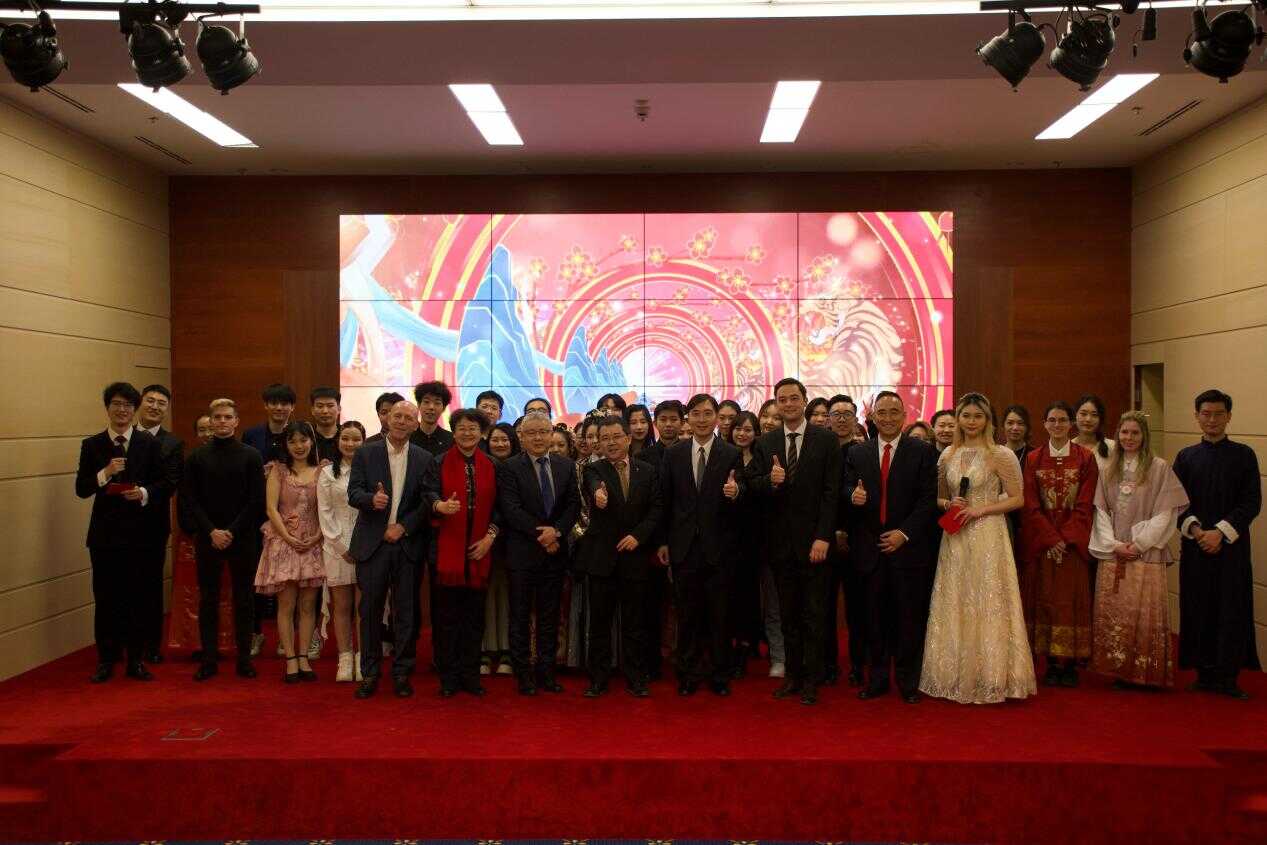 座谈会后,龚韬大使出席了全匈中国留学人员2024龙年春节联欢会,同200名中国留学生、孔院中匈方院长等嘉宾和华侨华人共同观看了由中、匈青年学生和孔院教师等共同表演的文艺节目。演出结束后龚韬大使同大家合影留念。联欢会共有14个节目,包括歌唱、舞蹈、器乐演奏和相声等。