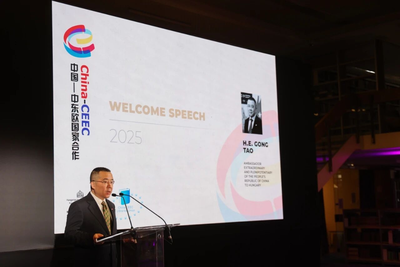 龚大使向论坛致以祝贺并表示,当前中匈关系进入历史最好时期,文化交流是推动民心相通的重要纽带。图书馆作为文明互鉴的重要平台,应在数字化与创新背景下深化合作、共促发展。中方愿与中东欧国家携手,在全球文明倡议指引下,加强人文交流,共同推动文明互学互鉴,促进世界文化繁荣。