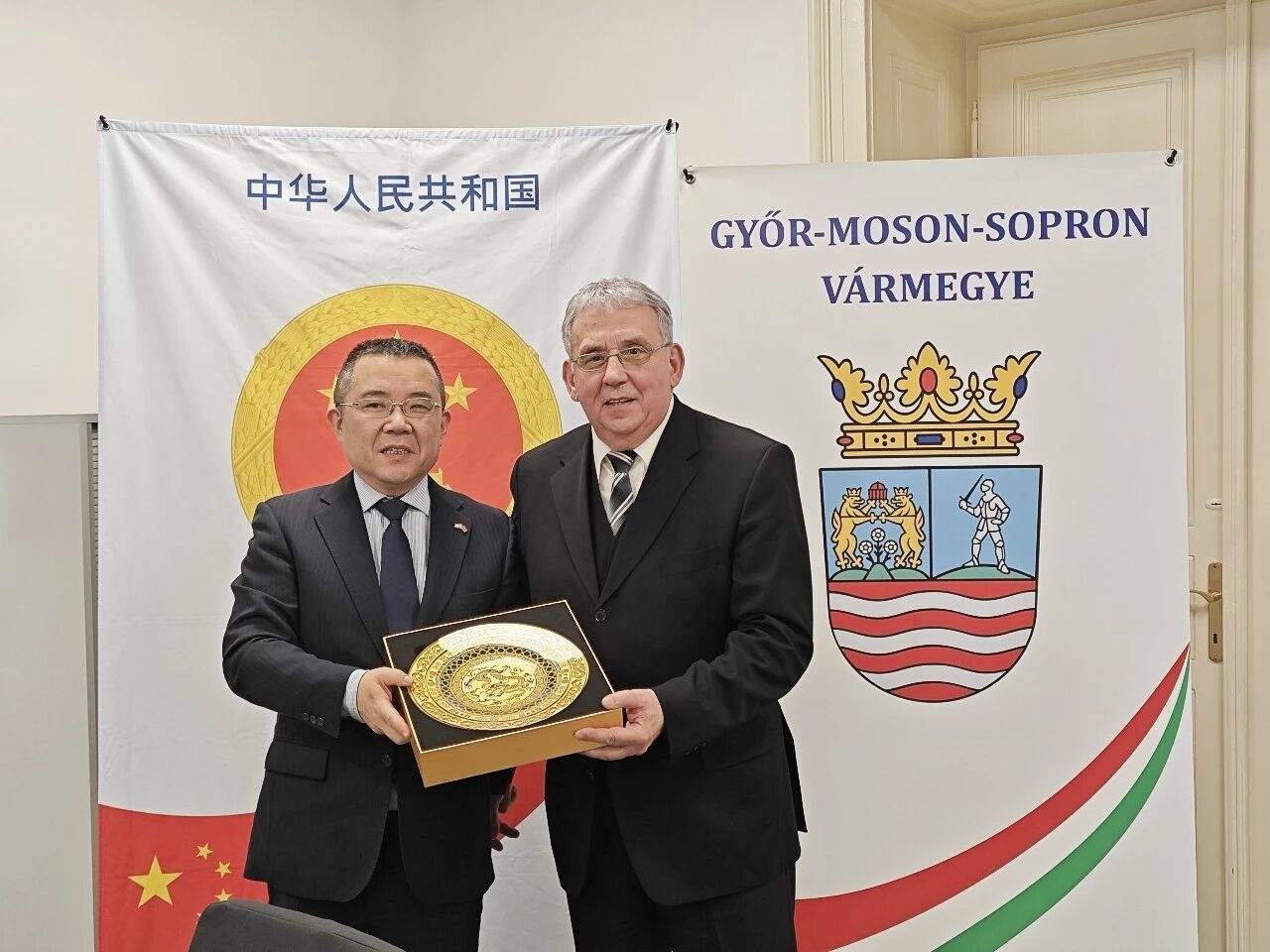 龚大使表示,在两国领导人的战略引领下,中匈关系高水平发展,各领域合作成果丰硕。杰尔州对华合作潜力巨大,即将成立的塞切尼大学孔子学院将培养更多促进中匈友好的青年人才。使馆愿促进中国地方省市同杰尔州的友好交往,深化双方经贸、教育、科创等领域合作,助力中匈关系发展。