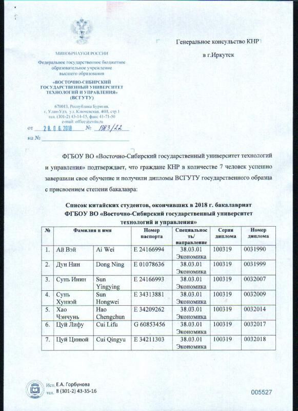 | 东西伯利亚工艺管理大学第一批毕业生名单第一页 | 东西伯利亚工艺管理大学第一批毕业生名单第二页 |