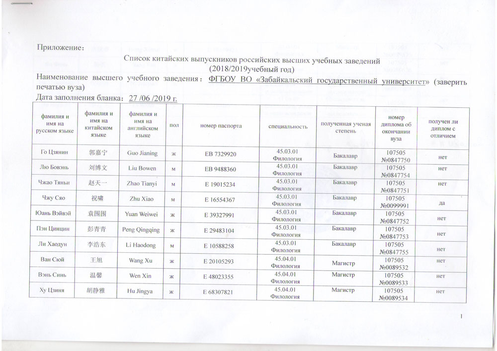 | 后贝加尔大学毕业生名单二 | 后贝加尔大学毕业生名单三 |