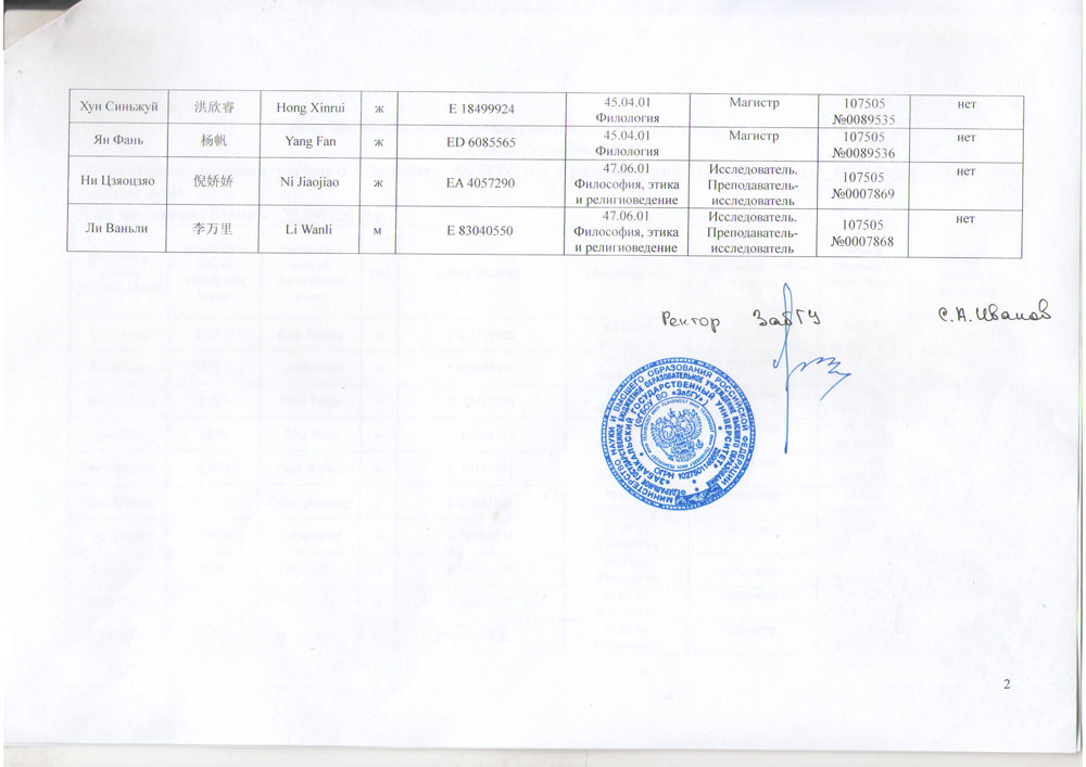 | 东西伯利亚工艺管理大学第二批毕业生名单 | 东西伯利亚文化学院 |