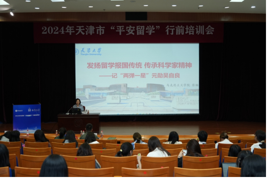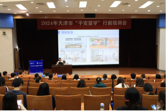 在首届平安留学宣传月到来之际,为积极响应教育部“平安留学进校园”号召,5月24日,由教育部国际合作与交流司指导,教育部留学服务中心主办,天津市教育委员会和南开大学承办的“2024年天津市‘平安留学’行前培训会”在南开大学举行。来自天津大学、天津财经大学、天津师范大学、天津外国语大学、天津商业大学、天津理工大学、天津科技大学、南开大学等天津市8所高校拟出国(境)师生近300人参加培训。本次培训会旨在强化留学人员思想政治引领,服务新时代人才强国战略,也是落实天津市科教兴市人才强市行动,营造引智聚才良好环境的一次深入实践。