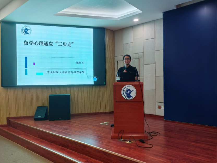 社会与心理学院副院长张红川以“留学心理调适三步走”为主题,结合自身在美留学的经历,通过“文化休克”“解决压力”等话题入手给同学们介绍形形色色的“留学病”及其产生的根源。借助生动形象的例子传授同学们如何通过建设心理基地、锤炼社会智力、培养自控能力三步进行留学心理调适。他希望同学们在留学期间保持良好心态,实现平安留学。