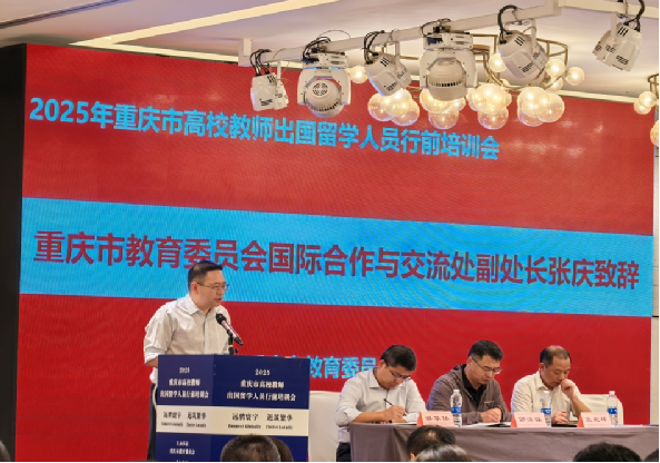 张庆在讲话中勉励全体学员,希望大家主动融入国际学术前沿,积极参与高水平交流合作。同时,要始终心怀家国,秉持文化自信,用世界听得懂的语言和方式生动讲述重庆故事、传播中国声音。他期待各位学员学成归来,早日成为重庆教育国际化的杰出使者和具有全球影响力的优秀学者代表。