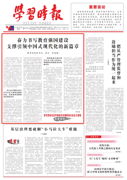 习近平总书记指出,我们要建设的教育强国,必须以支撑引领中国式现代化为核心功能。建设教育强国,既要遵循教育内部规律,更要跳出教育看教育,在中国式现代化的进程中,深刻把握教育与政治、经济、社会、科技和国家安全的关系,找准发展目标、明确主攻方向。