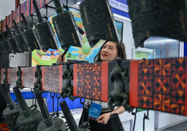 在2025世界数字教育大会教育数字化成果展上,参观者体验编钟演奏杜子璇摄