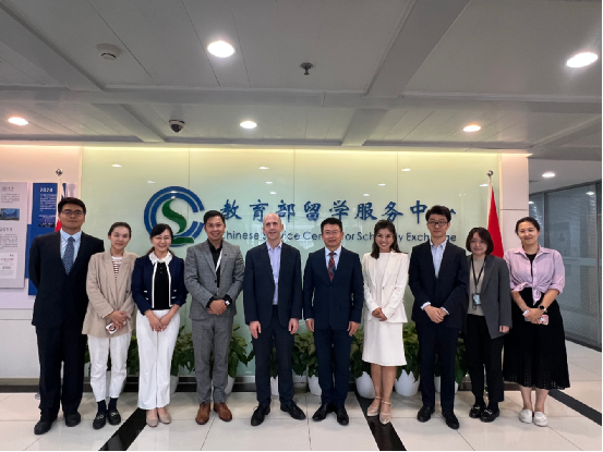 夏建辉主任首先对汤志理公使一行到访表示热烈欢迎,并系统介绍了中心开展的各项业务,重点阐述了中心在推进学生双向流动、搭建广泛平台等方面的新思路和新举措。汤志理公使表示,通过会议,对中心的工作有了更全面的认识和了解,希望与中心进一步深化交流与合作,共同开拓更多领域的新项目与合作机会。会上,双方围绕来华留学、国际合作等多领域的工作拓展进行了深入交流。